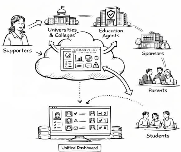 StudyVillage works in active partnership with universities, colleges, education agents and sponsoring bodies to augment and elevate existing student success systems.